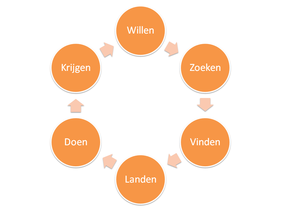 De Customer Journey. De reis van onze klant. Hoe komt onze bezoeker van eerste behoefte tot een tevreden klant? Hieronder een voorzet. De cyclus van Willen tot Krijgen.